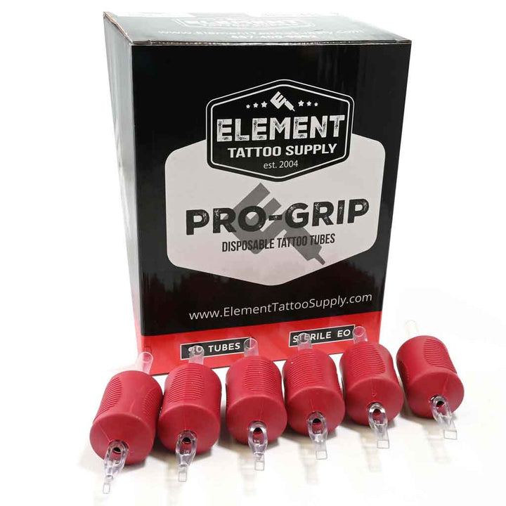 PRO-GRIP Disposable Tattoo Tubes by Element Tattoo Supply. 1.25" Red Silicone Grip , Sold by Box of 20pcs. (1.25"=30mm)